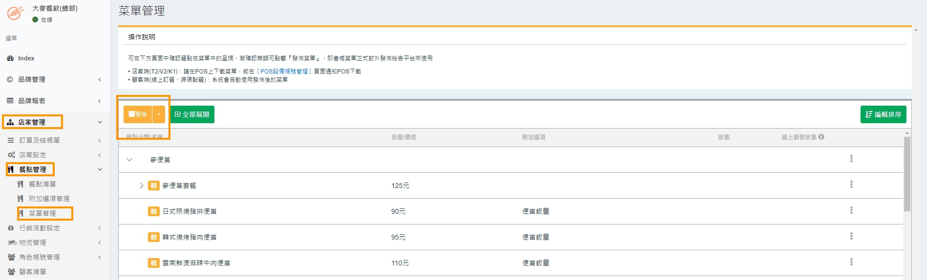修改完成並確認無誤後,點選橘色【 發佈 】鈕,客人看到的才會是您更新後的菜單唷!