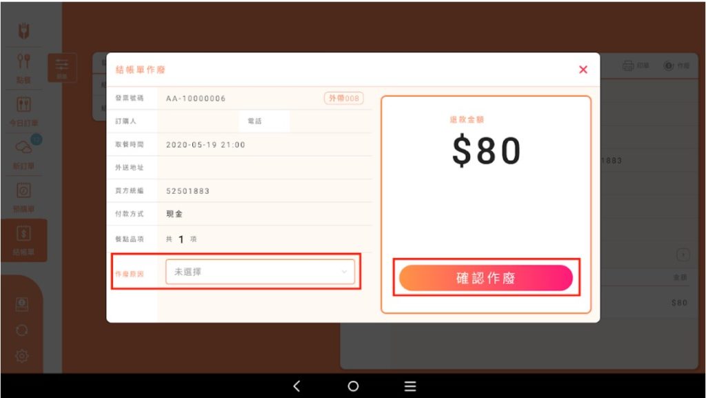 4. 選擇【 作廢原因 】後,點擊【 確認作廢 】