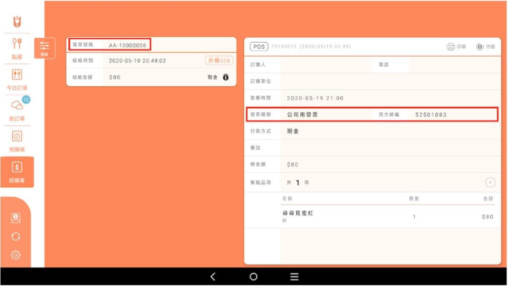 3. 確認結帳單所列的發票號碼是否一致,在這筆結帳單中點擊右上方【 作廢 】