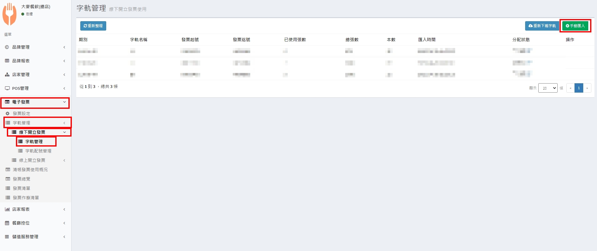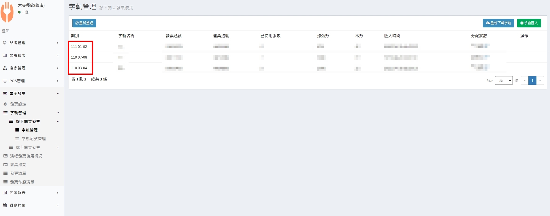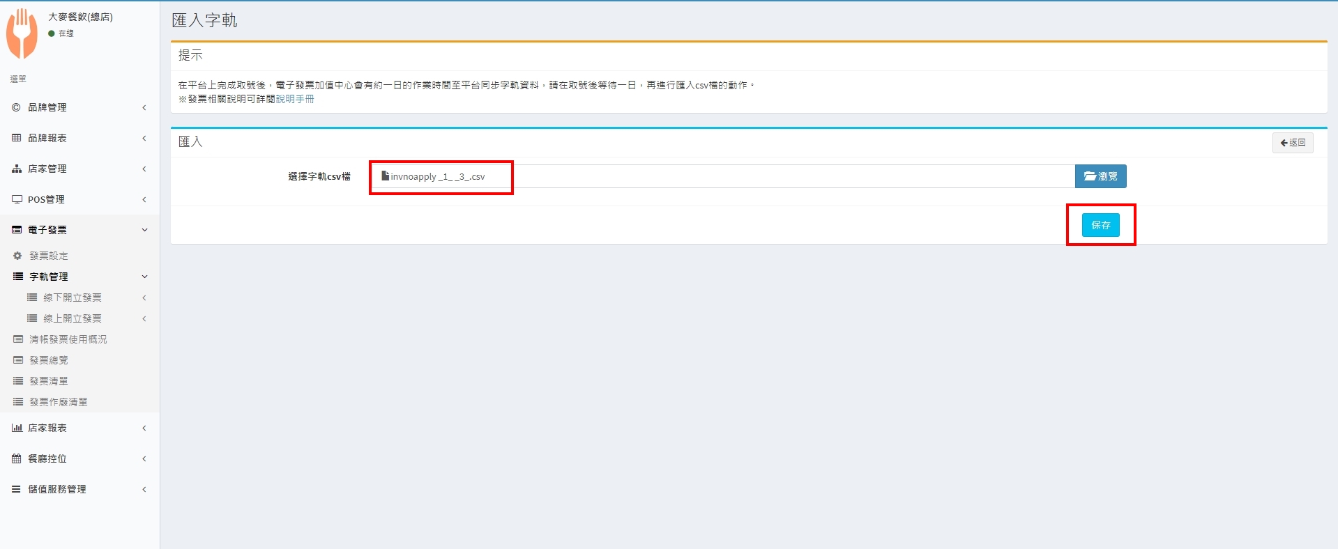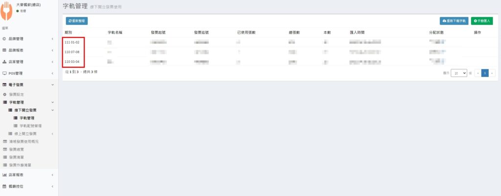 5. 上傳成功後,會在列表中看到此筆發票字軌資料