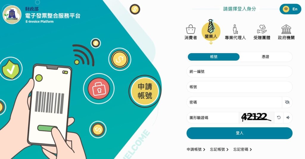 2. 以營業人身分登入