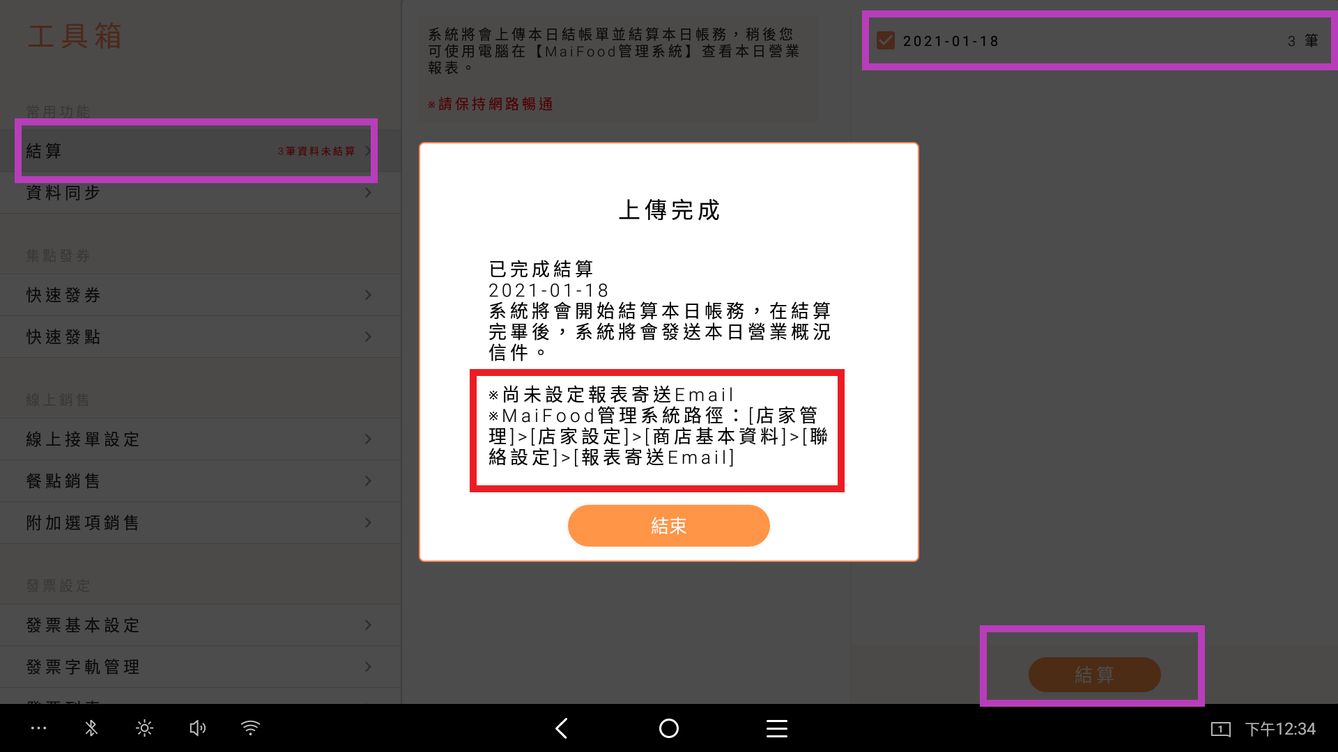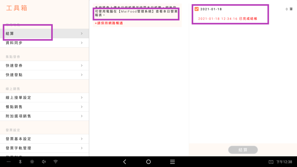 ※一天內可以多次結算,只要有結帳紀錄就要結算把資料上傳至後台喔