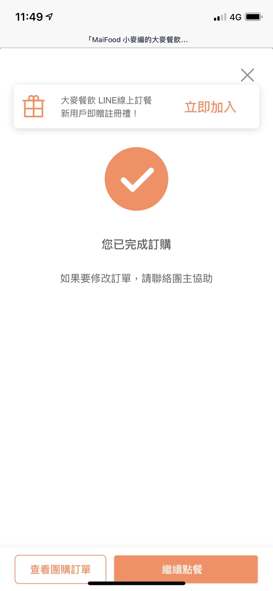送出後,也可點選【 立即加入 】來加入店家官方帳號喔!