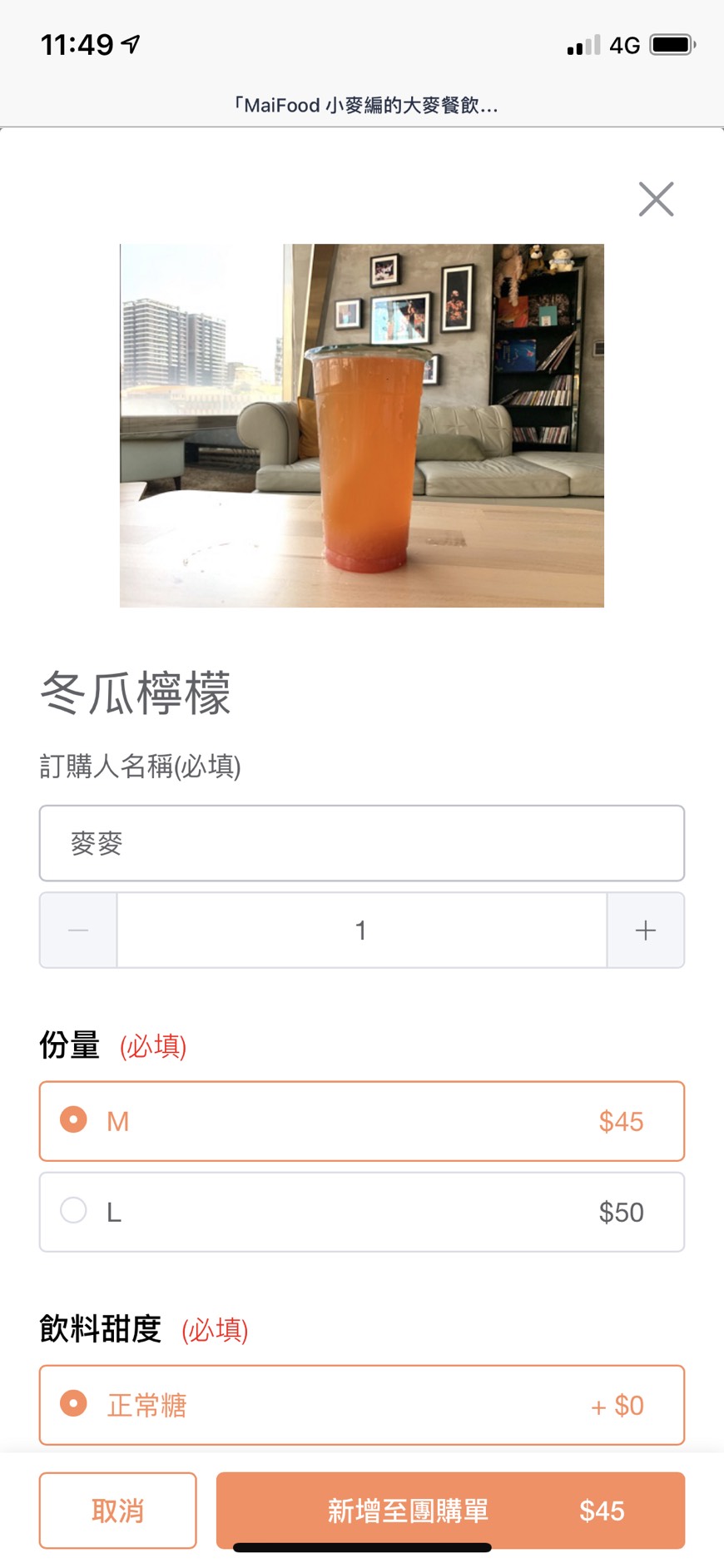 3. 輸入訂購人名字後,點選【 新增至團購單 】