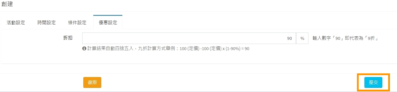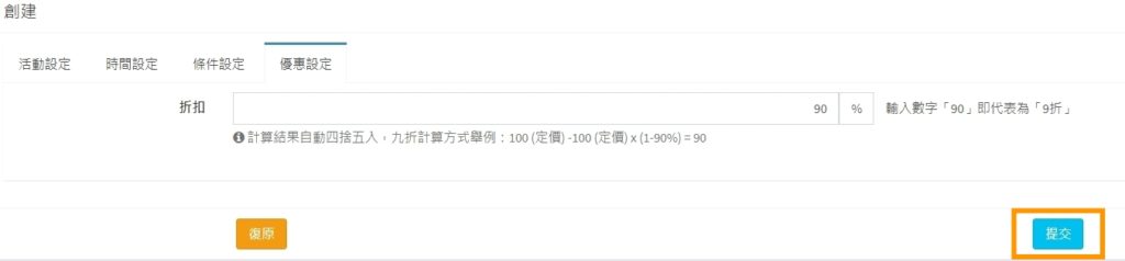 打上折扣的折扣,輸入完之後記得要按下【提交】