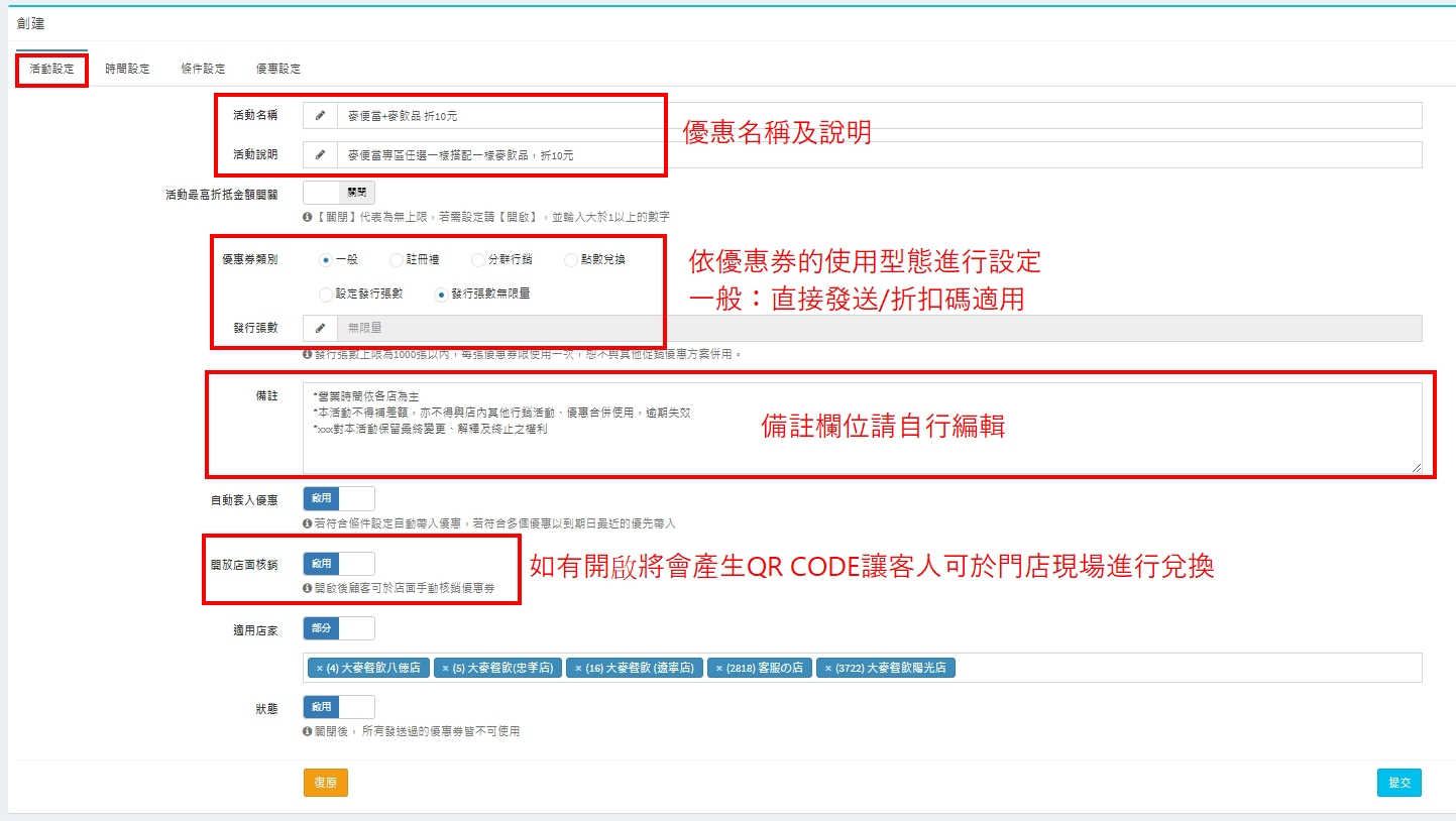 小提醒:若是建立一般優惠券