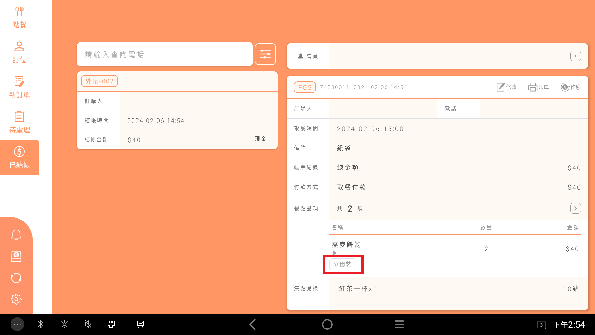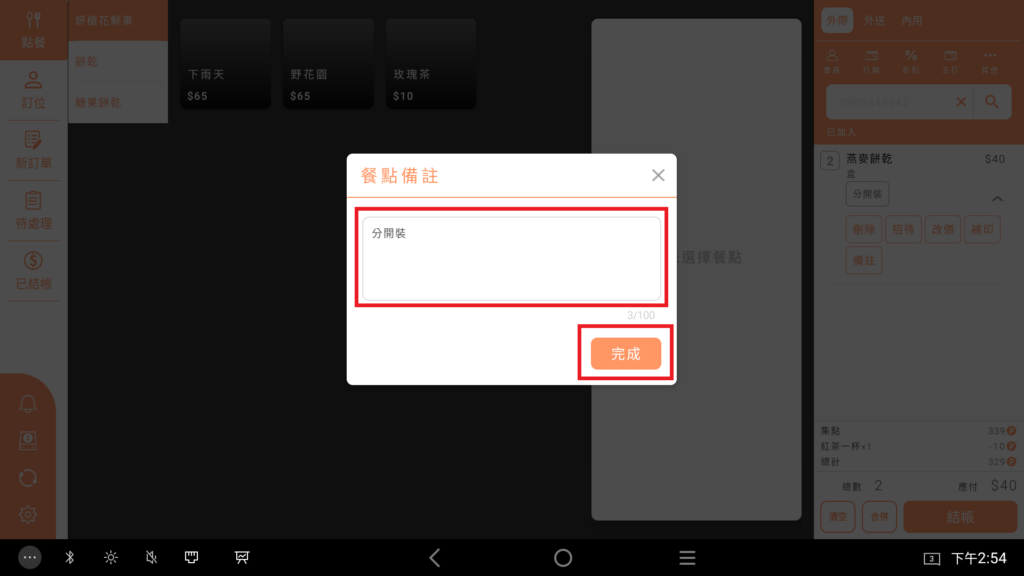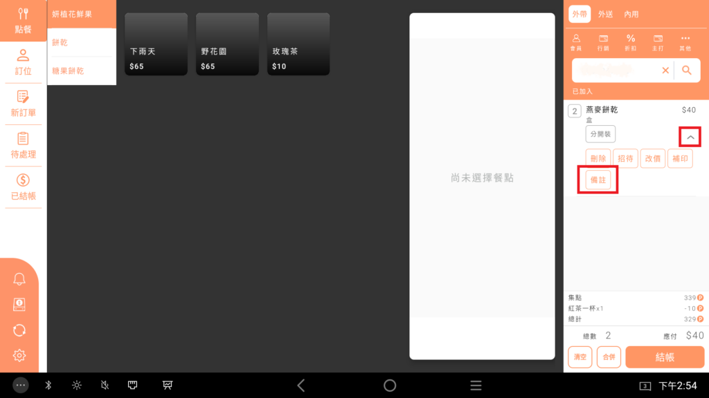 搜尋 搜尋 首頁 » 最新資訊 » POS點餐|單一品項備註 您想查詢的是... 單一品項備註 POS可針對單品項客製需求做備註,以下帶您看於POS中該如何操作:於欲備註的品項點擊 【 ﹀ 】 ,展開各別編輯的項目,點選 【 備註 】。 即可輸入備註內容,點擊 【 完成 】即可保存。 備註輸入完成後會顯示於附加選項正下方,文字框起讓您可以輕鬆確認備註內容。 印出單據呈現 顧客單: 廚房單: 標籤貼紙: 注意事項 此部分僅能針對單一品項進行備註。如同品項但不同備註,需另外單點品項再進行備註。此功能尚未擁有快捷選擇,如經常使用,可參考建立附加選項,即可直接選擇。 Q&A 1. 標籤貼紙沒印出餐點備註,該怎麼辦?請幫我們確認機器上的設定,是否有選擇列印「餐點備註」:【工具箱>列印站設定>標籤貼紙 編輯>自訂欄位其中一欄請選擇『餐點備註』>儲存】 2. 餐點備註一定會印出在小白單上嗎?是的,若有輸入餐點備註,不論是廚房單還是顧客單都會顯示哦! 相關文章 全部 取餐叫號看版 後台 換菜 銷售狀態 取餐叫號看板 | 相關設定 POS點餐|套餐換菜 POS點餐|新增招待理由欄位 ⭐點餐操作常見問題 POS點餐|備餐完成通知 POS點餐|銷售狀態設定 ✍🏻找到答案了嗎? Let us know if you liked the post. That’s the only way we can improve. 🙂 🙁 Categories: MoneyPOS操作POS設備POS點餐最新資訊桌位內用點餐操作Tags: 備註點餐
