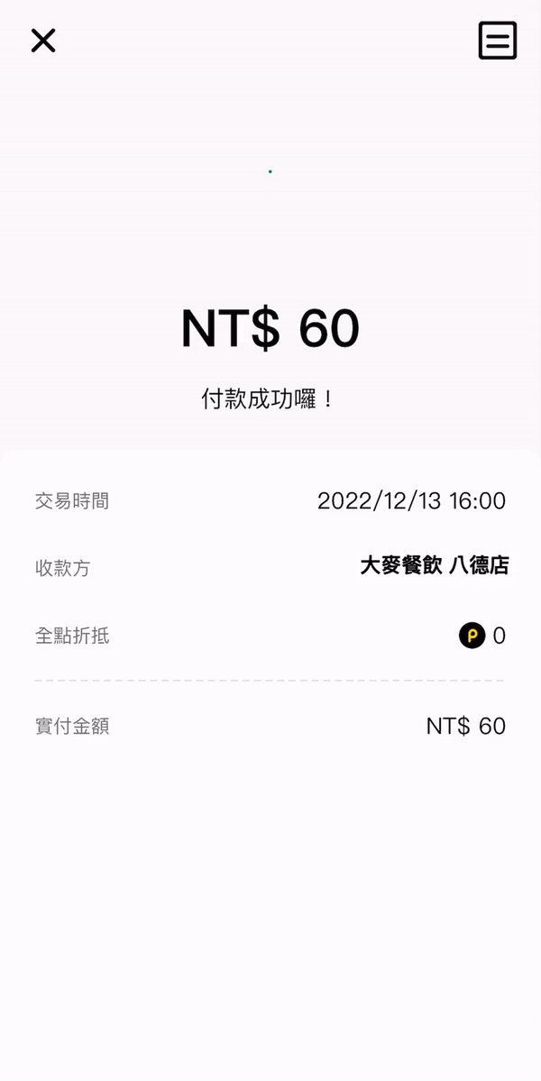 掃描成功就會直接進行交易確認成功結帳。