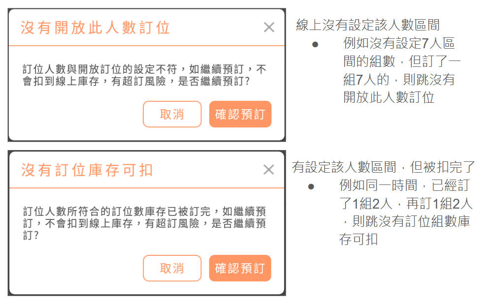 • 不論是否開啟開關,在POS訂位人數超過時,皆會跳提醒