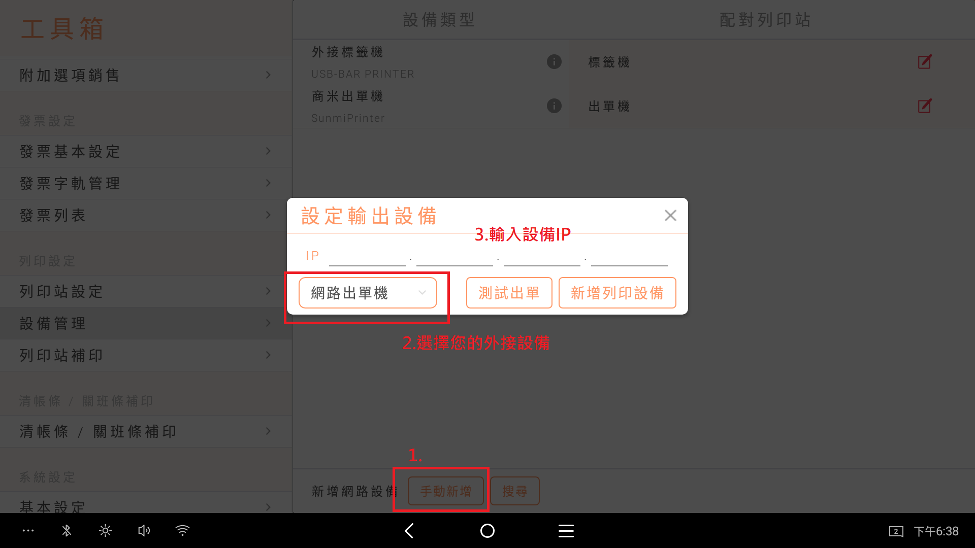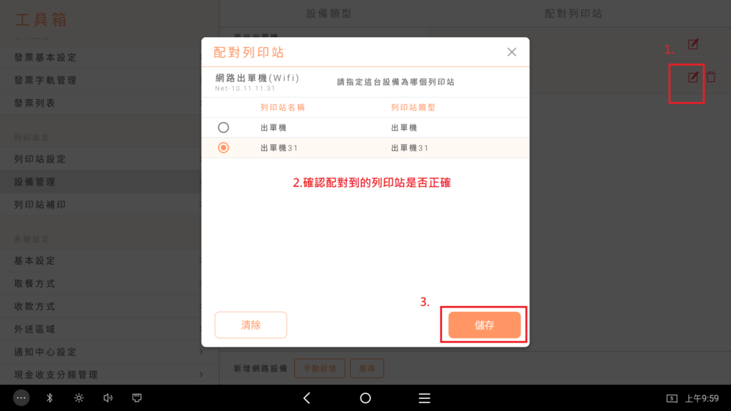 當您收到機器設備,或因為移動時不小心將線材拔除,重新裝上後連接不上POS機,可以使用以下方式進行設置