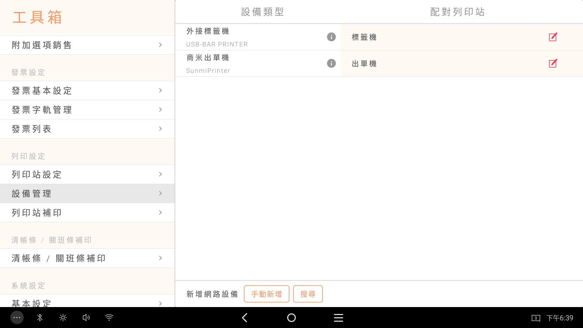 【 設定 】/【 工具箱 】/【 設備管理 】/【外接標籤機 】