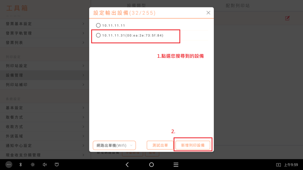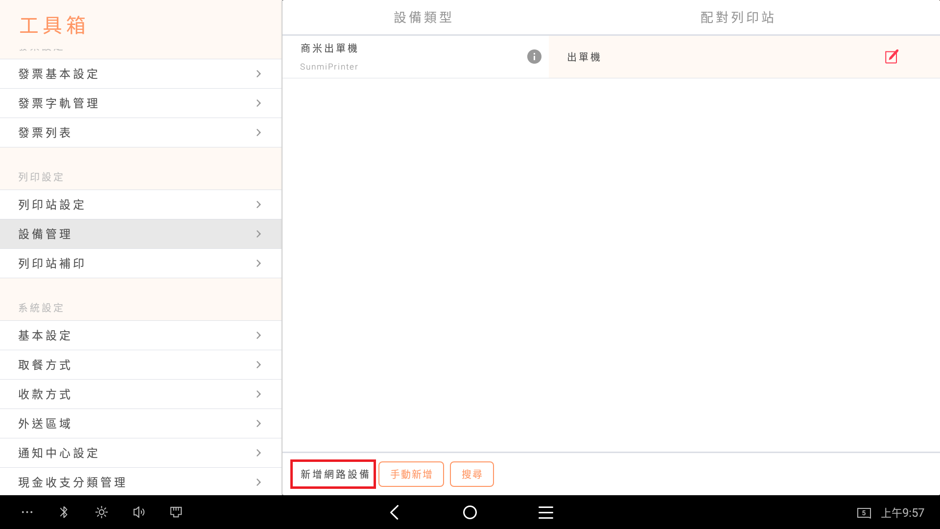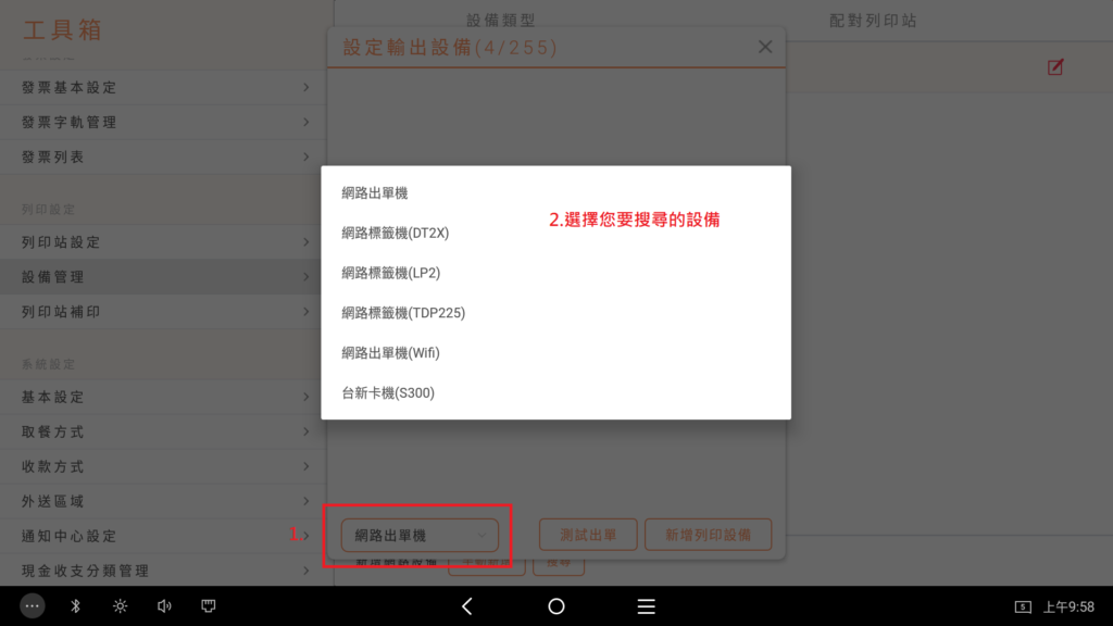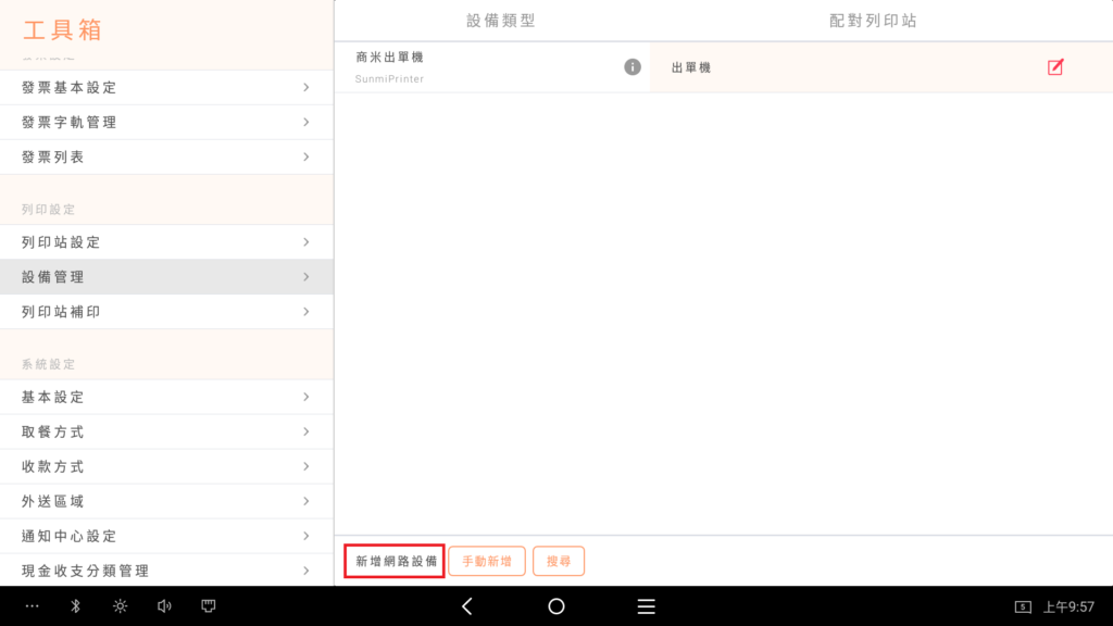 2.【 設定 】/【 工具箱 】/【 設備管理 】/ 新增網路設備 【搜尋】