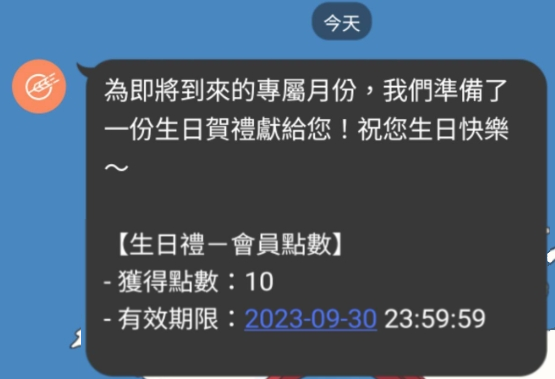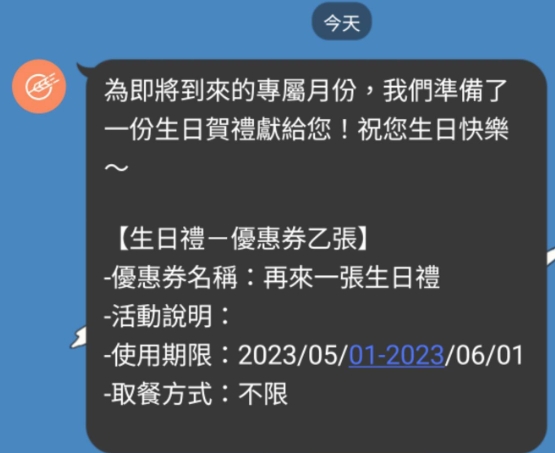 於消費者的生日當月1號後可以拿到壽星專屬優惠(若消費者有填寫生日資訊),