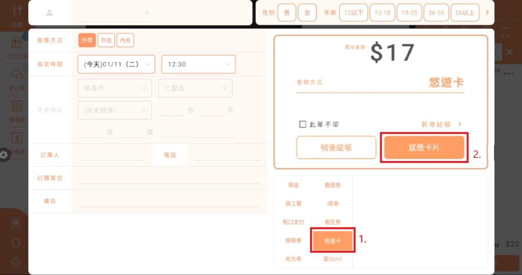 選擇【 悠遊卡】付款別,並點下【 感應卡片 】
