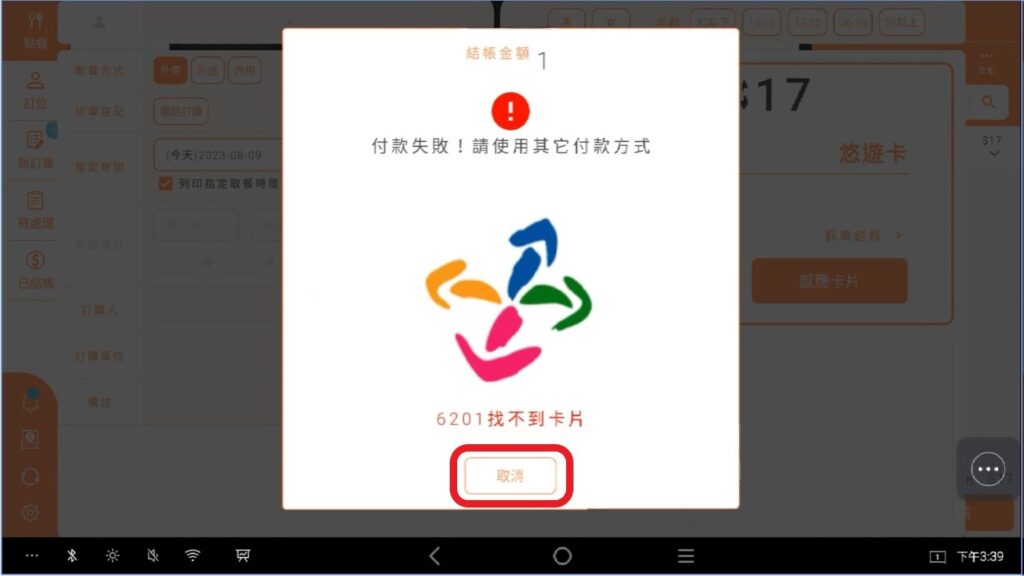 掃碼後若出現錯誤代碼,有可能為客人卡片餘額不足,