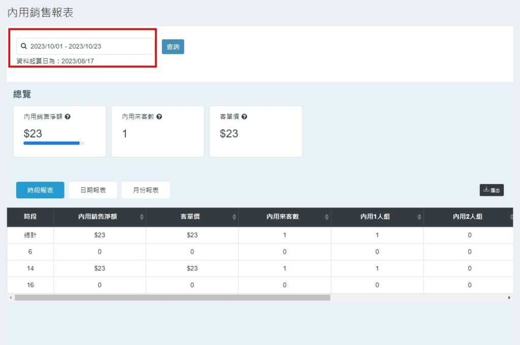 內用銷售報表將會記錄所有內用人數,並計算客單價。