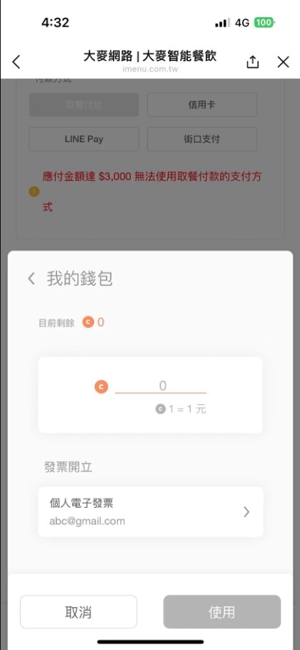 購買了店家的儲值金後不曉得怎使用在線上點餐嗎?趕快來查看這篇文章,然後手刀下訂您心愛的店家哦! 您可以先於圖文選單內查看我的錢包 會員專區 > 我的錢包可以看到店家設定的常見問題,點選CODE即可出示錢包也可查看交易紀錄 我的錢包頁面 常見問題 QR CODE頁面(現場使用) 交易紀錄 接下來可以到線上頁面進行點餐囉~於imenu線上消費時,若想使用儲值金,可點擊我的錢包,輸入本此折抵金額即可使用儲值金核銷時,會先核銷有價儲值金的部分,再核銷贈點最後輸入完金額後就可以送單囉! 選擇我的錢包 輸入使用金額並使用 ✍🏻找到答案了嗎? Let us know if you liked the post. That’s the only way we can improve. 🙂 🙁 Categories: 儲值金最新資訊線上點餐