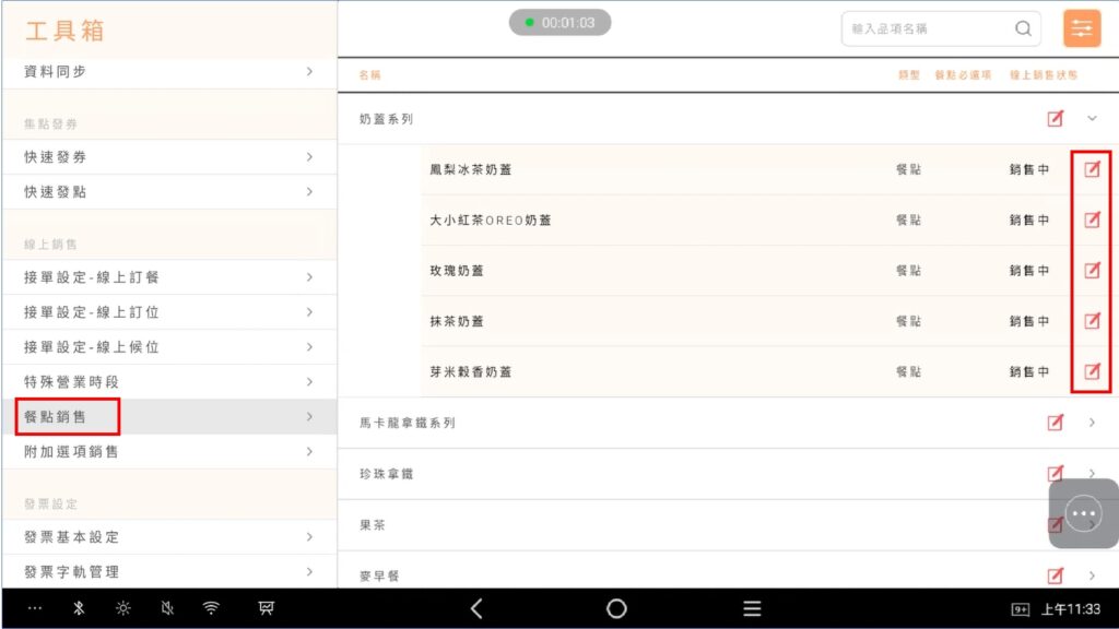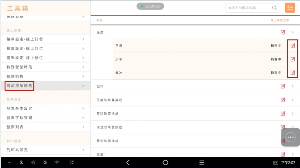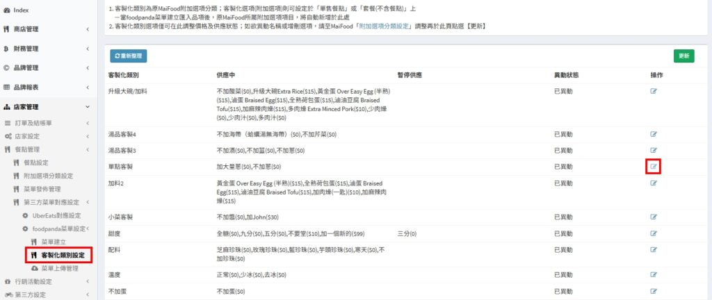 - 在大麥POS、菜單發佈管理、附加選項分類設定等位置調整銷售狀態時,foodpanda也會連動變更狀態。