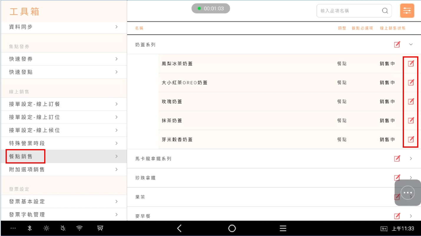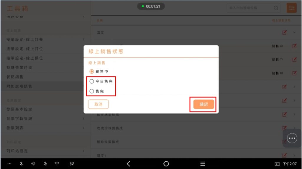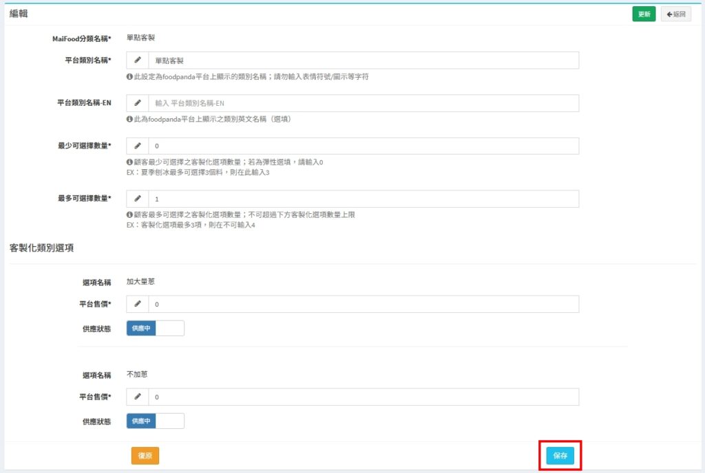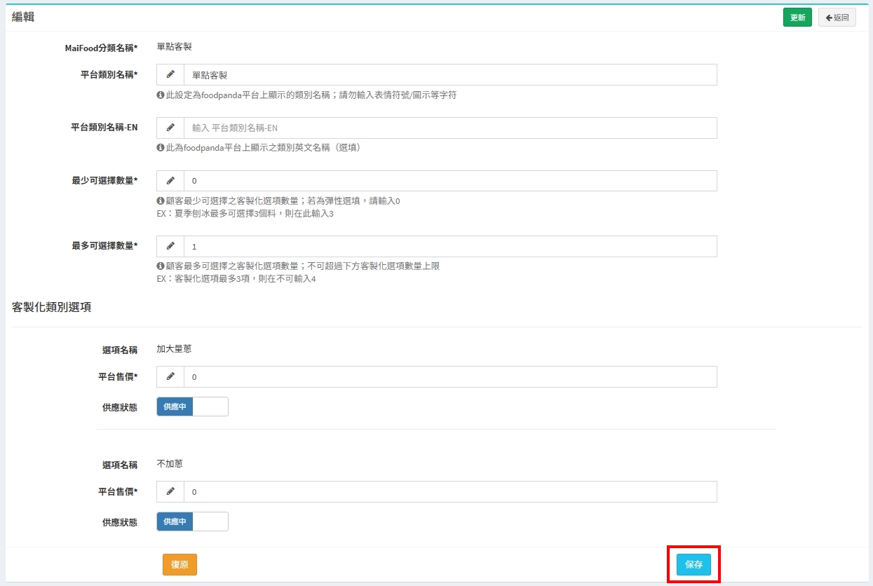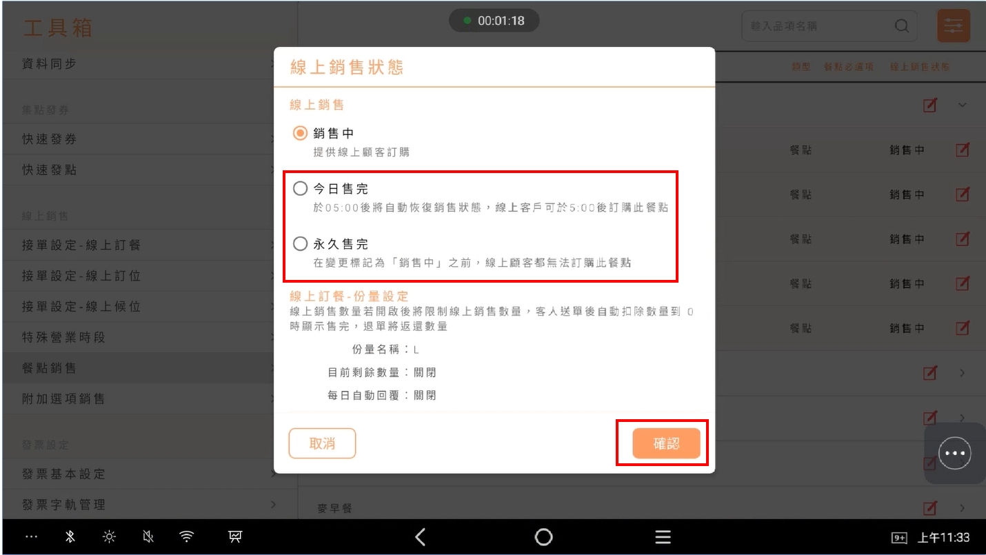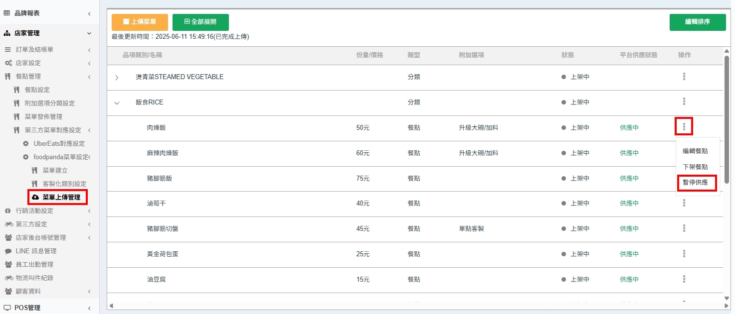 - foodpadna調整銷售狀態時,不需要點擊【上傳菜單】,即會變更狀態