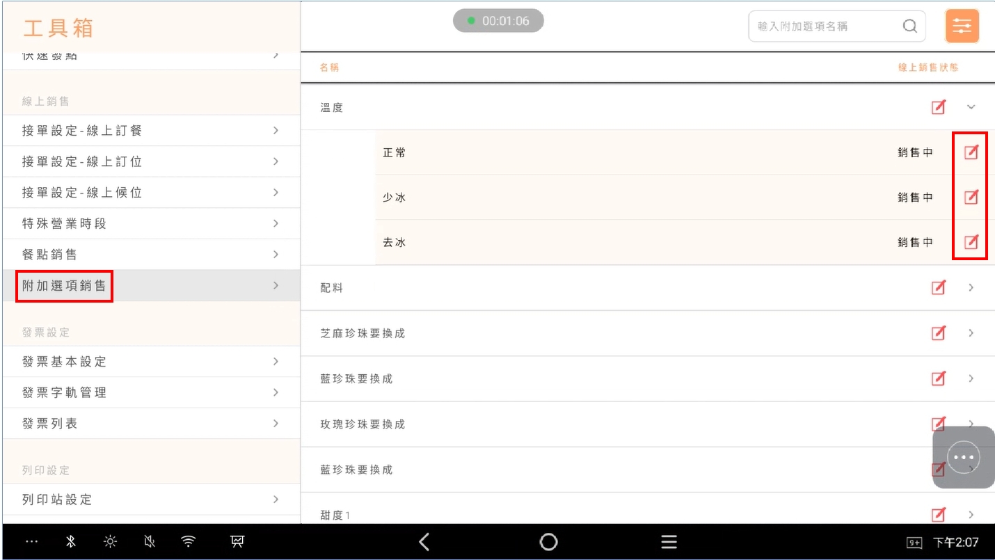 情境四. 大麥的附加選項要繼續販售,foodpanda要調整為售完
