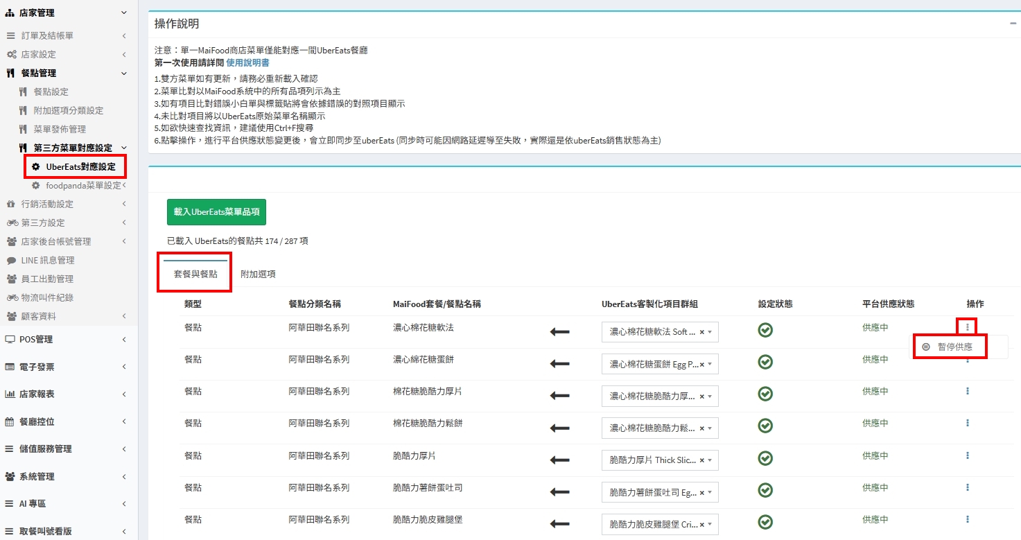 此功能會是將大麥的餐點銷售狀態同步到Uber Eats上!