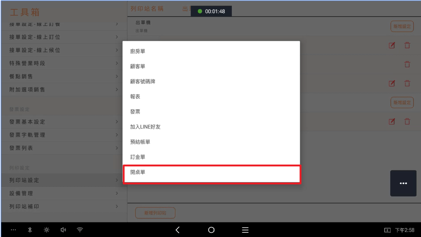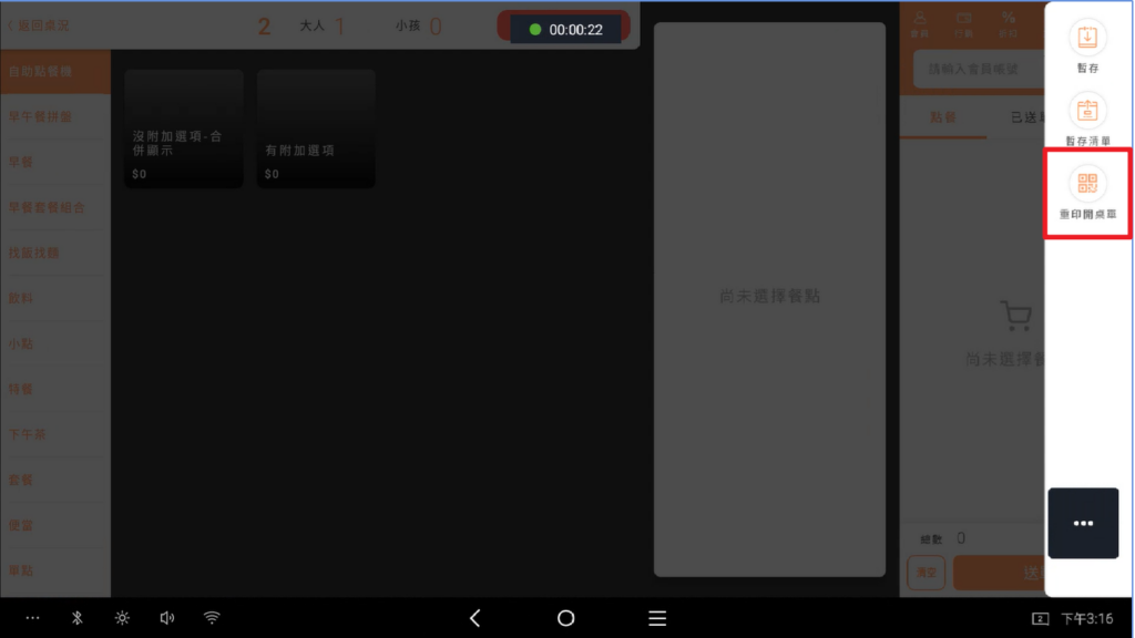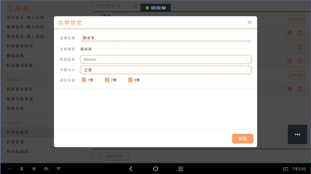 - 開桌的人數用餐時間都會詳細在開桌單上顯示,更好讓服務人員和消費者說明,桌位相關資訊