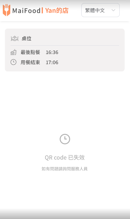 最後點餐時間到:掃碼點餐頁會顯示點餐限制時間已到,無法再進行點餐