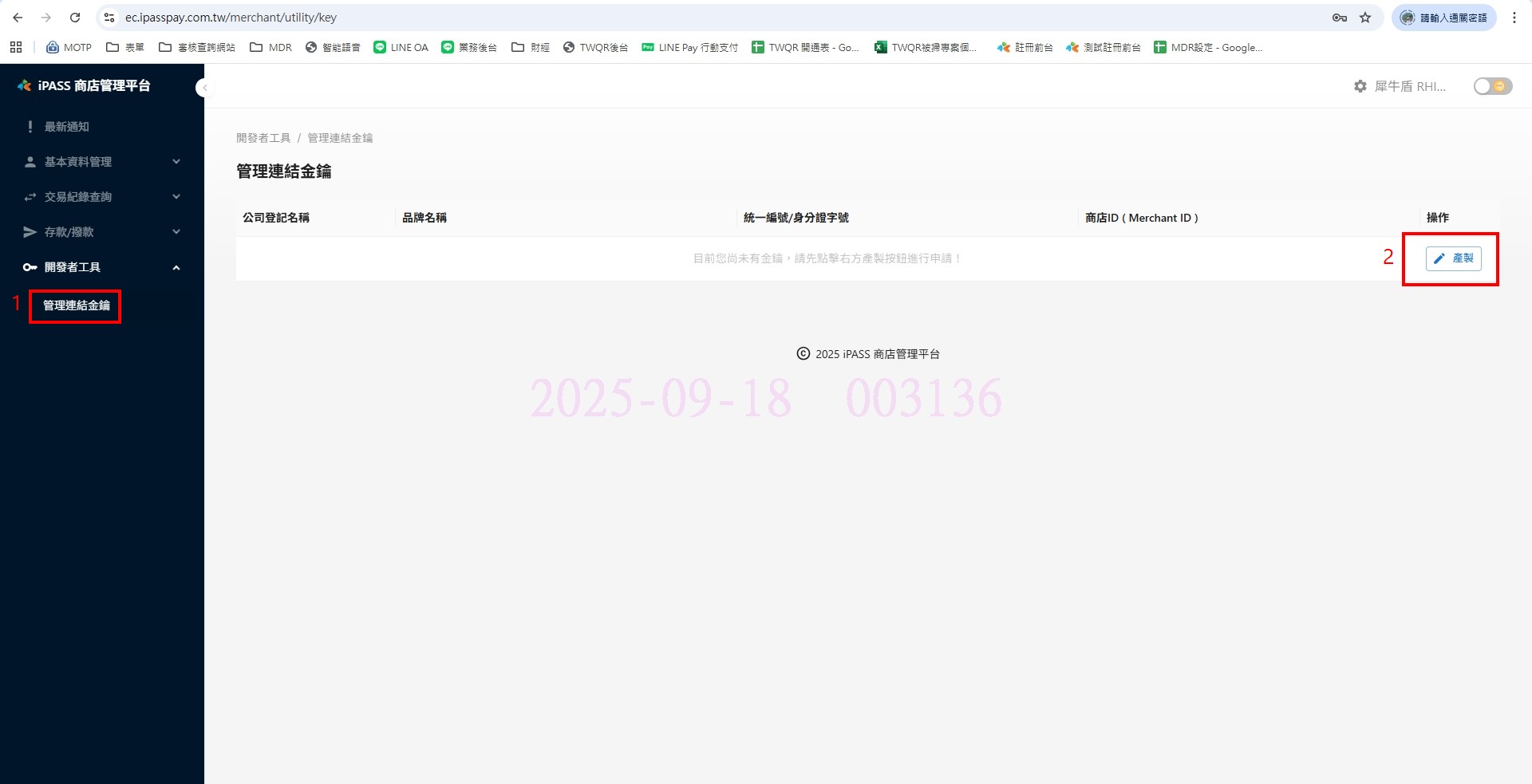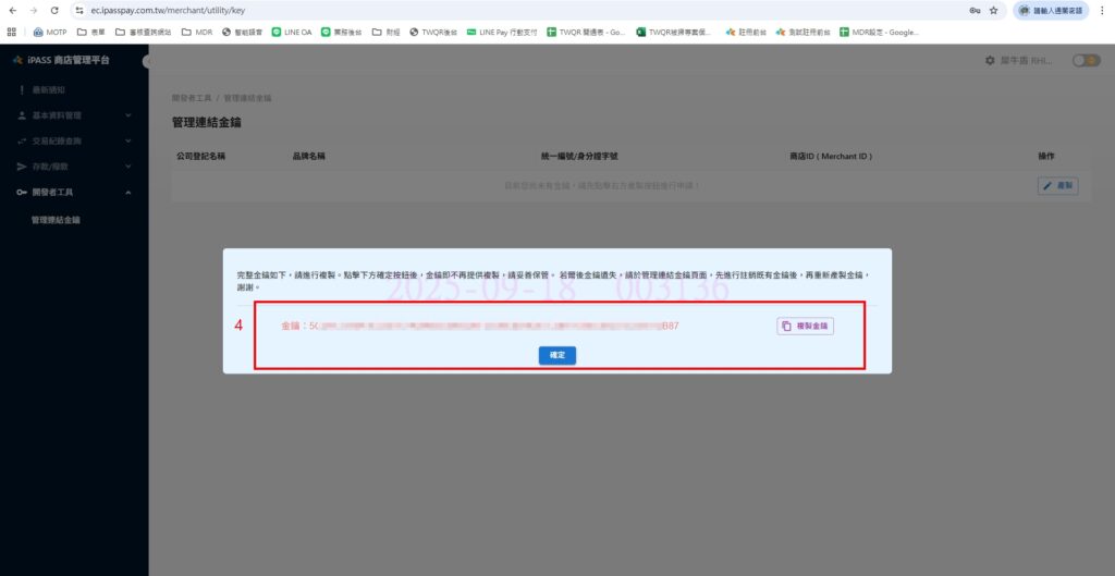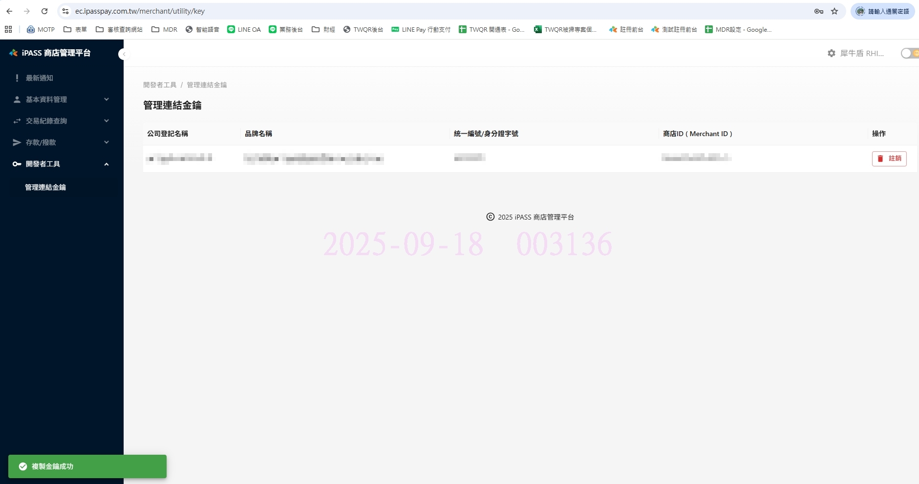 搜尋 搜尋 如何取得串接金鑰 神秘文字 到iPASS MONEY 商家對帳後台>點選開發者工具>管理連結金鑰選擇【產製】 3.輸入密碼 4.完成密碼輸入後,就會有金鑰囉,即可點選複製 5.金鑰產出成功,可以到大麥後台進行設定囉 ! 後台設定串接 後台>店家管理>店家設定付款方式管理 > 金流設定 > 串接金流名稱新增「一卡通」 選擇收款方式「一卡通線下」 點選保存後於POS設備>資料同步>下載店家發佈檔與店家設定檔 完成以上動作即可在POS機測試結帳 若消費者的一卡通有綁定載具,可使用支付載具的功能 ✍🏻找到答案了嗎? Let us know if you liked the post. That’s the only way we can improve. 🙂 🙁 Categories: 付款別設定後台操作最新資訊Tags: 一卡通